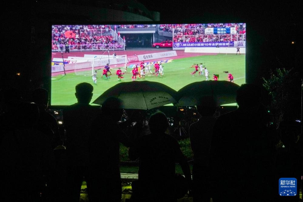 6月29日,南通市内多处户外大屏进行“苏超”比赛直播。新华社记者 李博 摄