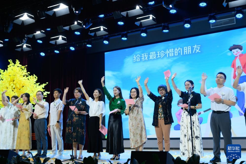 6月29日,老师在毕业庆典上为毕业生送上祝福。新华社记者 金良快 摄