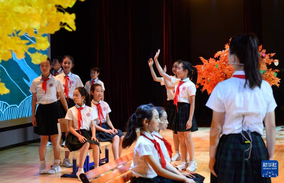 6月29日,小学毕业生在毕业庆典上表演节目。新华社记者 金良快 摄