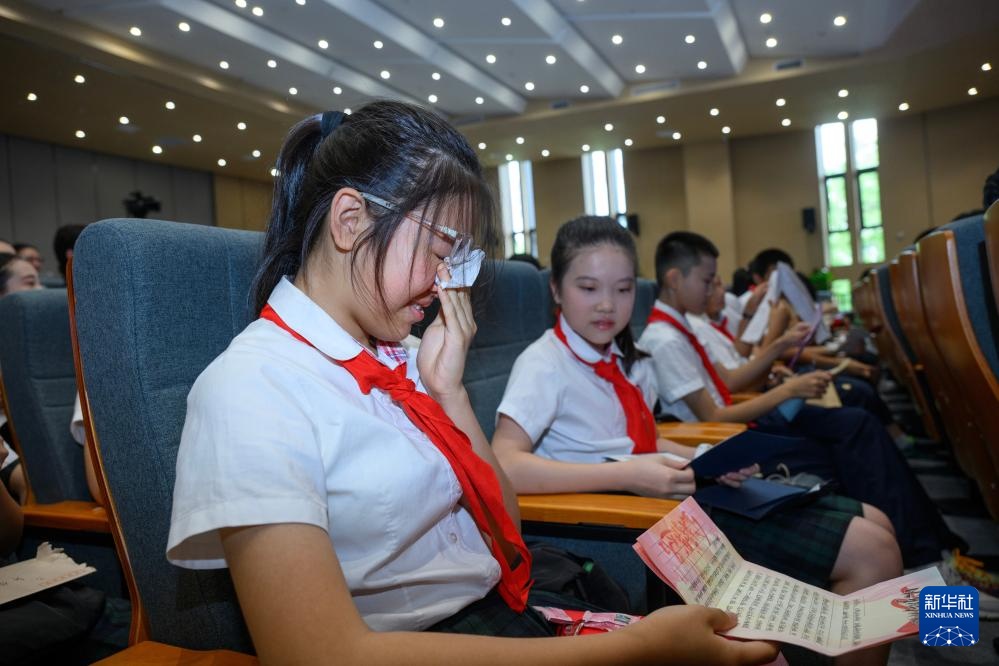 6月29日,小学毕业生在毕业庆典上阅读家长写的信时感动落泪。新华社记者 金良快 摄