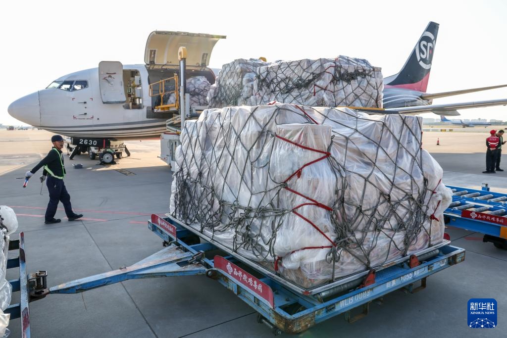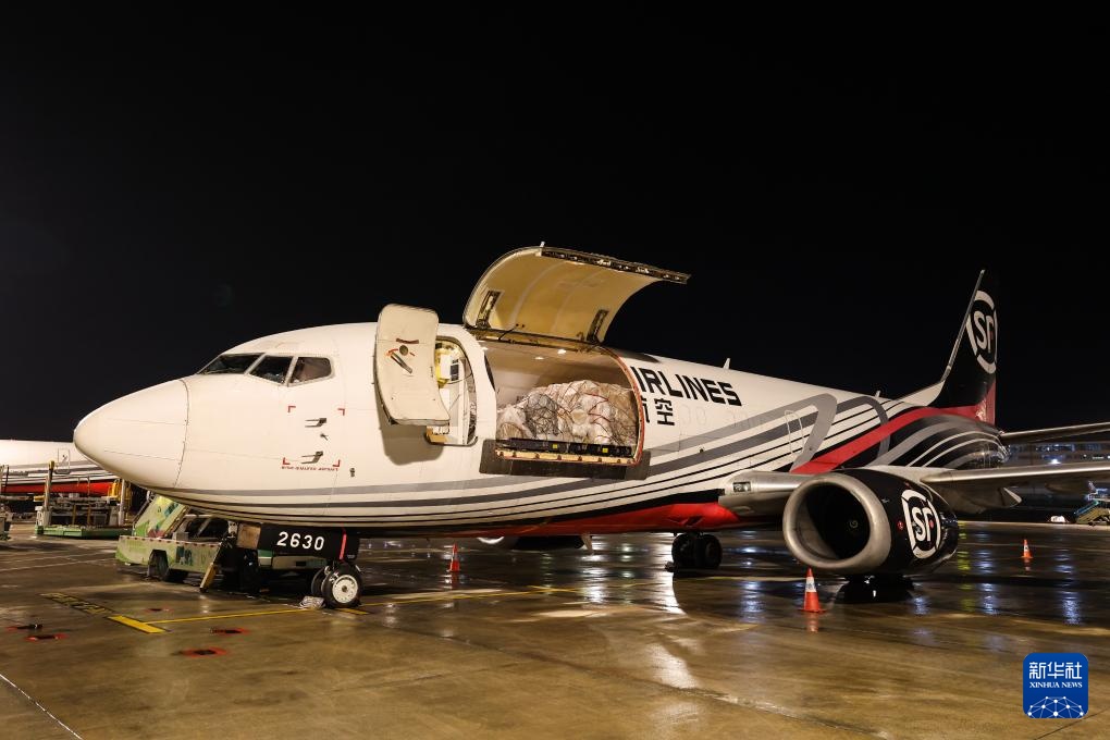 6月29日凌晨,在广州白云国际机场全货机专用停机坪,近13吨荔枝快件装载完成,即将飞赴西安。新华社记者 刘大伟 摄