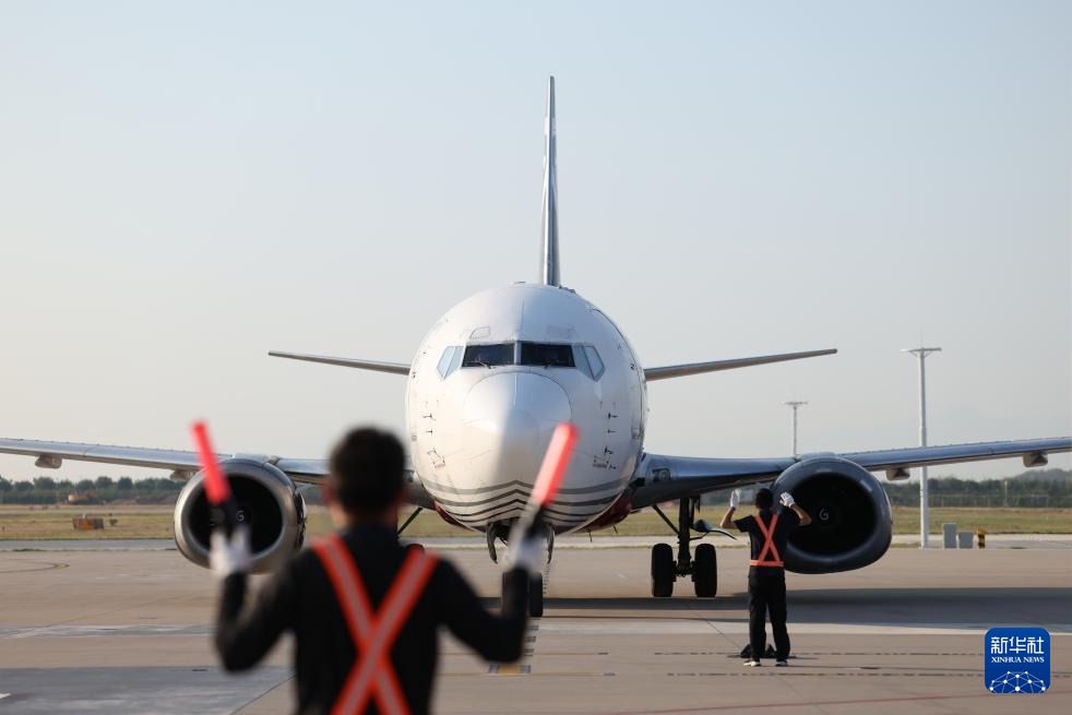 6月29日清晨,从广州起飞搭载着荔枝快件的航班降落在西安咸阳国际机场。新华社记者 毛思倩 摄