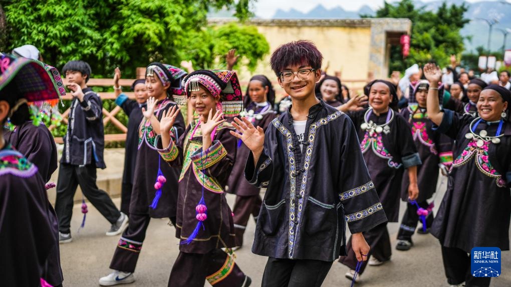 黔西南布依族苗族自治州的布依族群众在表演《八音坐唱》(6月29日摄)。新华社记者 陶亮 摄