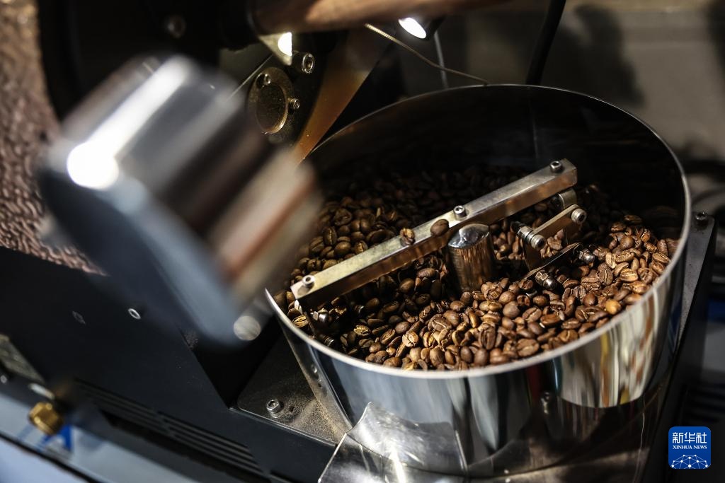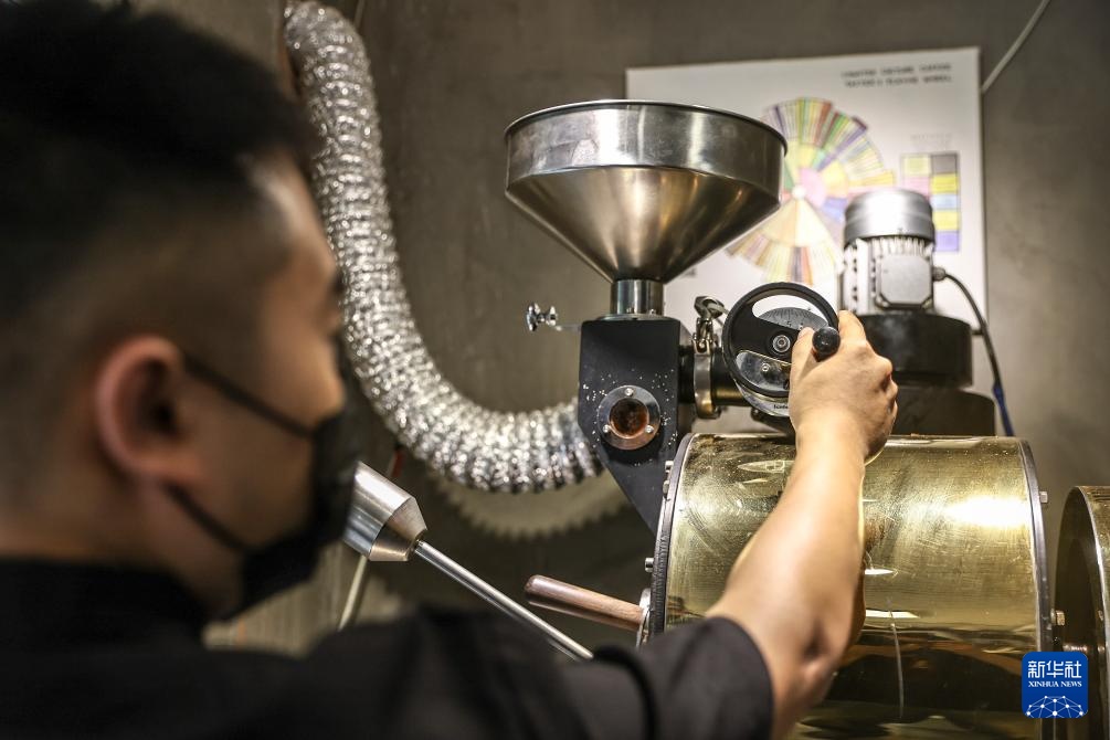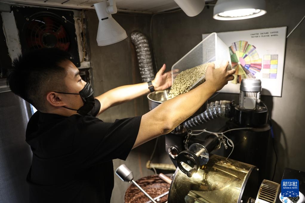 6月26日,刘佳迪在烘焙咖啡豆。新华社记者 潘昱龙 摄