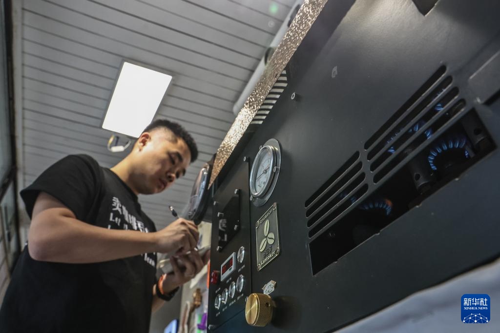 6月26日,刘佳迪在烘焙过程中调节烘豆机风门。新华社记者 潘昱龙 摄