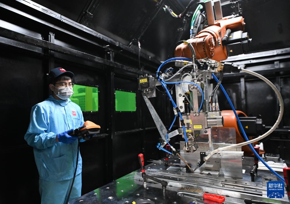6月27日,在位于惠州的广东利元亨智能装备股份有限公司,工作人员在进行激光填丝焊前的参数设置。新华社记者 邓华 摄