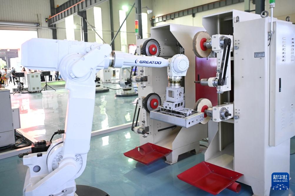 位于揭阳的巨轮智能装备股份有限公司的光伏控制箱机器人打磨单元(6月29日摄)。新华社记者 邓华 摄