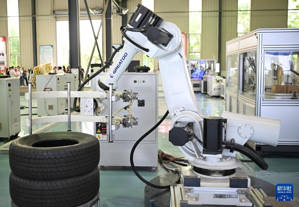 位于揭阳的巨轮智能装备股份有限公司的轮胎柔性自动搬运机器人(6月29日摄)。新华社记者 邓华 摄