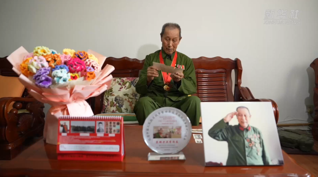 今年100岁的老兵李尚春曾是中国人民解放军原第47军140师418团的战士。1947年12月,他加入了中国共产党,参加过解放战争、湘西剿匪战斗和抗美援朝战争,在枪林弹雨中九死一生,先后获得九枚勋章。