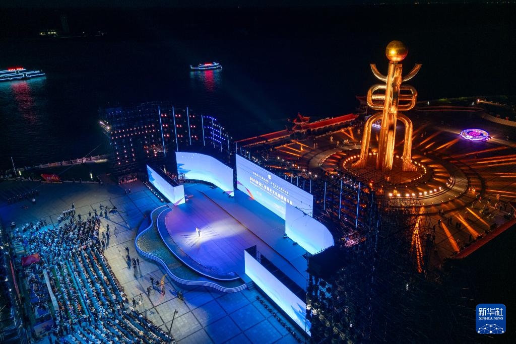 7月2日拍摄的2025黑龙江省特色文化旅游推介会现场(无人机照片)。新华社记者 张涛 摄