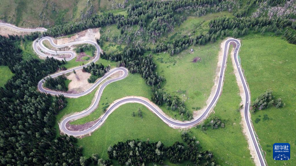 这是7月2日拍摄的新疆阿禾公路上(无人机照片)。新华社记者 张啸诚 摄