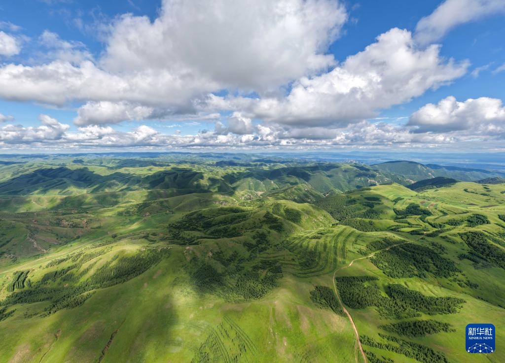 这是7月5日拍摄的敕勒川高山草原风光(无人机拼接照片)。新华社记者 马金瑞 摄