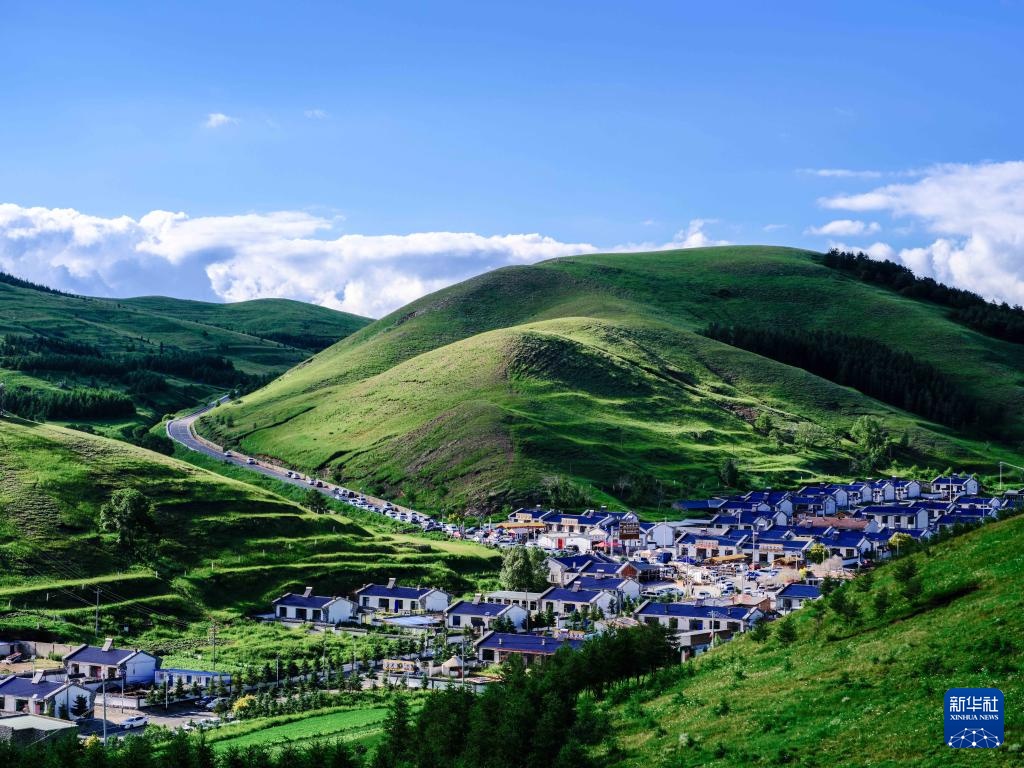 盛夏时节,位于内蒙古呼和浩特市新城区黄花窝铺村的敕勒川高山草原绿意盎然,风景如画。
