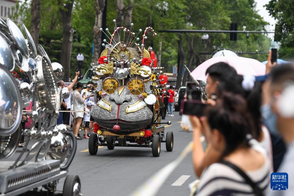 7月5日,艺术花车在新民大街上巡游。新华社记者 张楠 摄