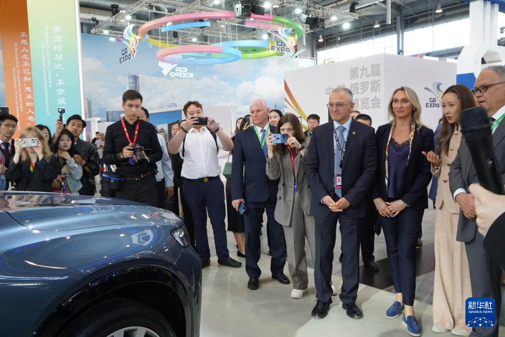 7月7日,在俄罗斯斯维尔德洛夫斯克州首府叶卡捷琳堡国际展览中心,俄罗斯经济发展部副部长德米特里·沃利瓦奇(右四)出席第九届中俄博览会。新华社记者 刘恺 摄
