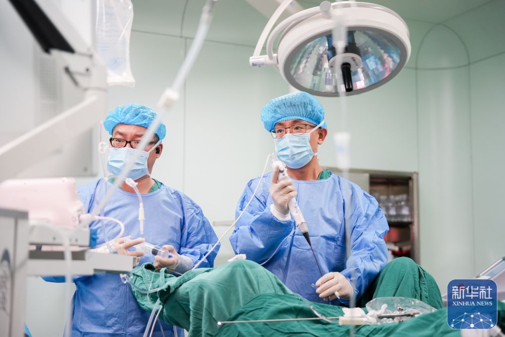 在新疆伊犁哈萨克自治州中医医院手术室,江苏援疆医生魏云飞(右)为患者进行手术治疗(2025年7月6日摄)。新华社记者 徐宏岩 摄