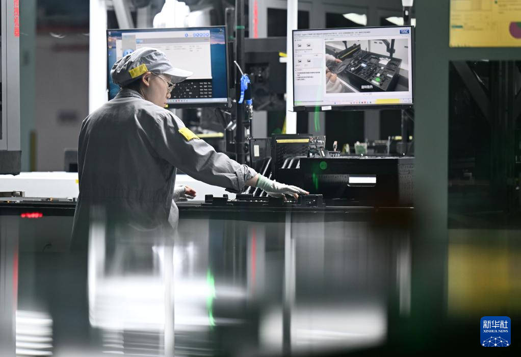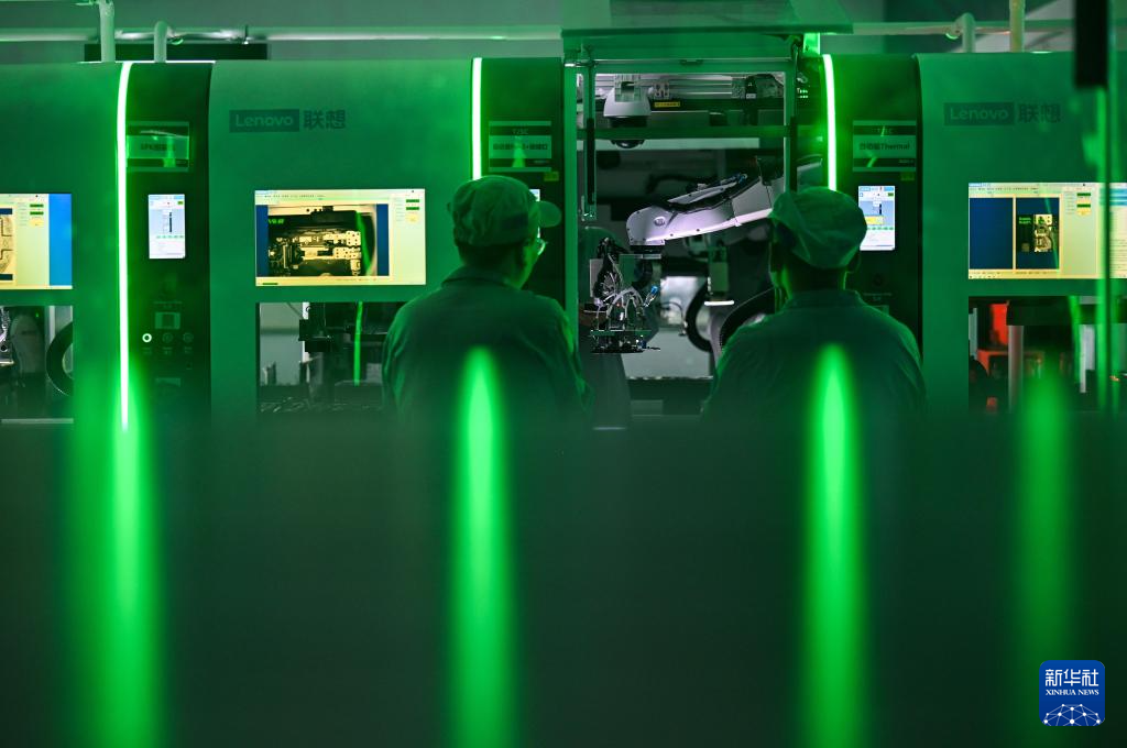 7月4日,工作人员在联想天津零碳智造工厂笔记本生产线作业。新华社记者 赵子硕 摄