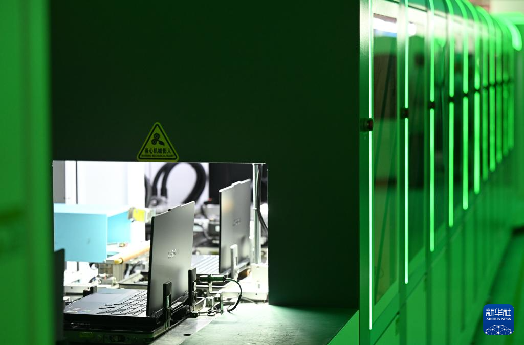这是7月4日拍摄的联想天津零碳智造工厂笔记本测试区一角。新华社记者 赵子硕 摄