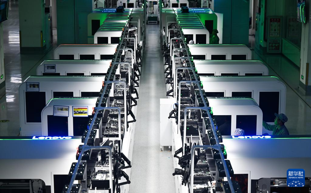 这是7月4日拍摄的联想天津零碳智造工厂笔记本生产线。新华社记者 赵子硕 摄