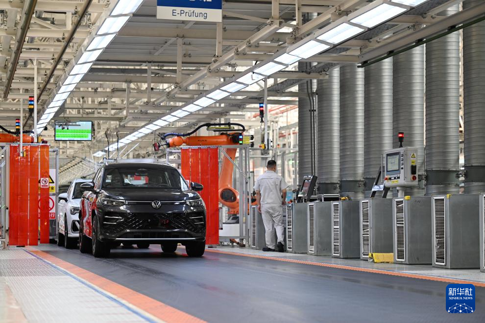 7月7日,在天津经济技术开发区一汽-大众华北基地总装车间,新车有序下线。新华社记者 赵子硕 摄