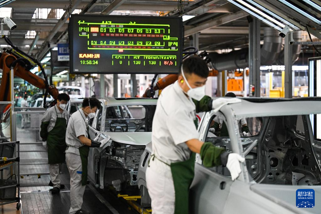 7月7日,工作人员在天津经济技术开发区一汽-大众华北基地焊装车间检查车辆。新华社记者 赵子硕 摄