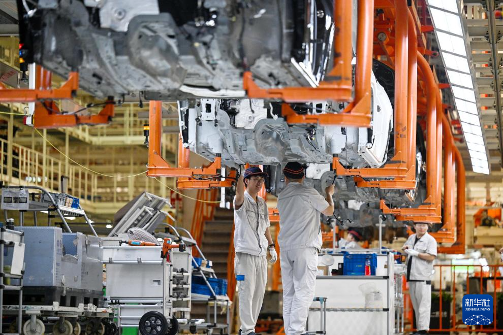 7月7日,工作人员在天津经济技术开发区一汽-大众华北基地总装车间装配车辆。新华社记者 赵子硕 摄