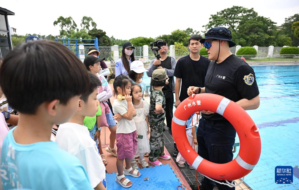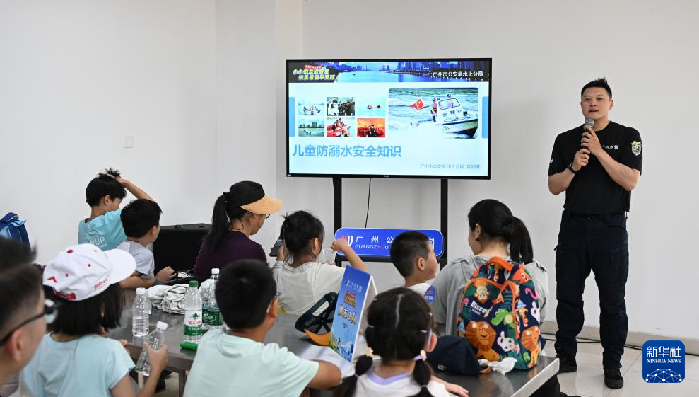 7月8日,水警讲解防溺水安全知识。新华社记者 邓华 摄