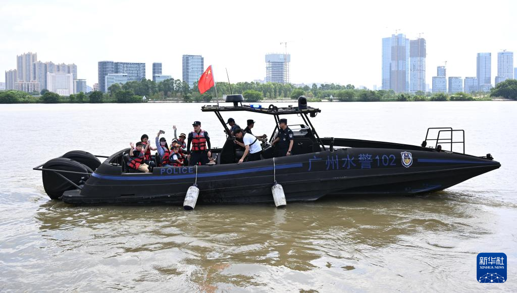 7月8日,广州市公安局“平安广州宣讲团”组织学生等走进市公安局水上分局,近距离感受水上警察装备和救援技能,在互动体验中学习安全知识。