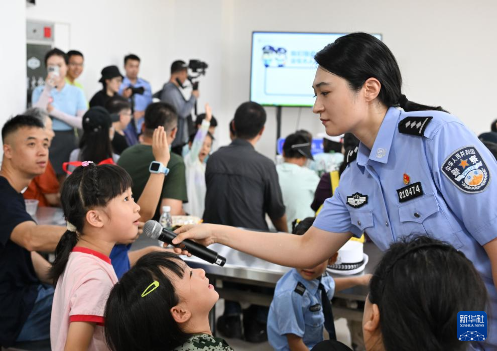 7月8日,平安广州宣讲团民警提问小朋友安全知识。新华社记者 邓华 摄