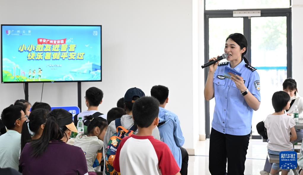 7月8日,平安广州宣讲团民警讲解安全知识。新华社记者 邓华 摄
