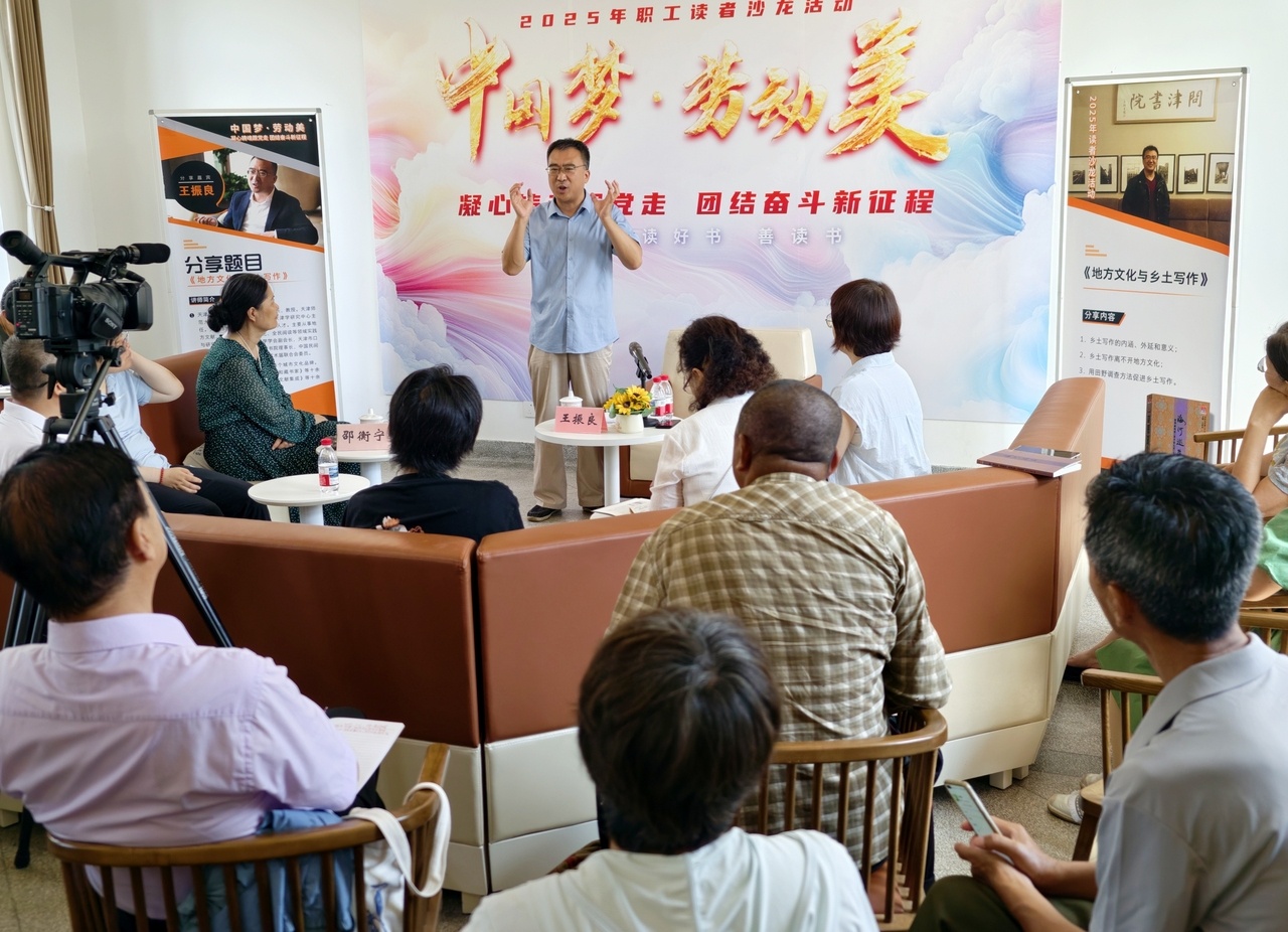 7月6日,以“中国梦·劳动美 凝心铸魂跟党走 团结奋斗新征程”为主题的职工读者沙龙系列活动,在全国工会职工书屋示范点天津市职工图书馆精彩举行。本场沙龙活动主讲嘉宾天津师范大学古籍保护研究院副院长王振良教授,为30余位对津派文化怀有浓厚兴趣的职工读者带来了以“地方文化与乡土写作”为主题的讲座。