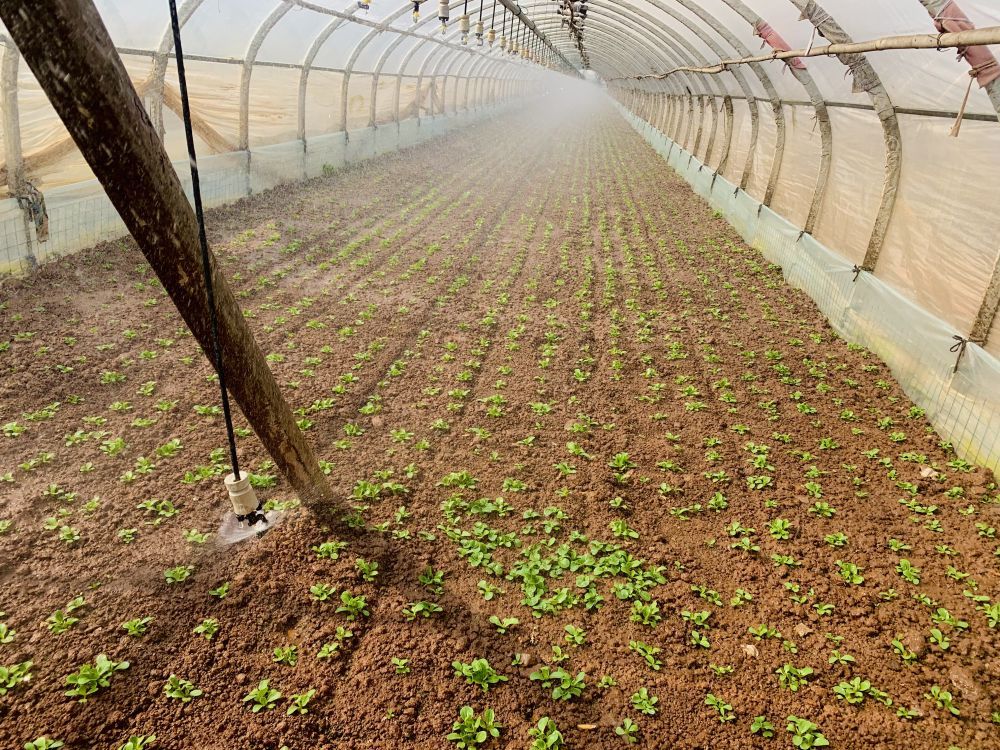 滇池流域现代化灌区蔬菜大棚的喷灌设备正在浇灌菜苗。新华社记者熊轩昂 摄