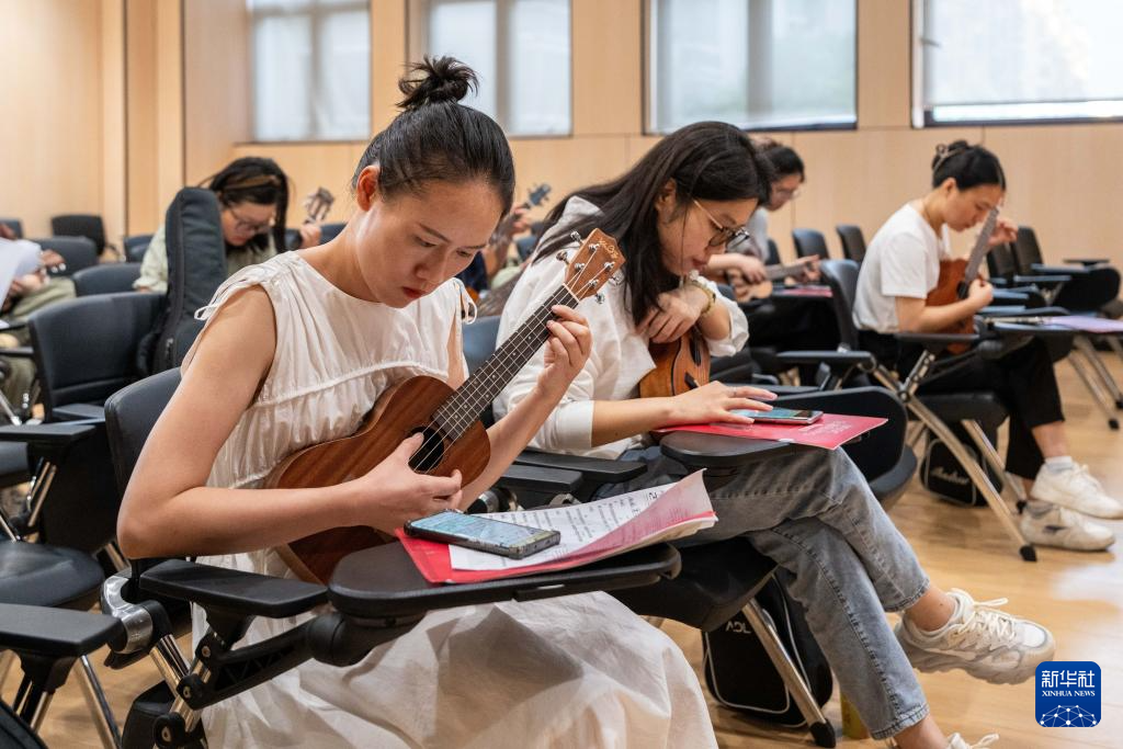 7月9日,在湖南湘江新区文化馆,学员在练习尤克里里。新华社记者 陈思汗 摄