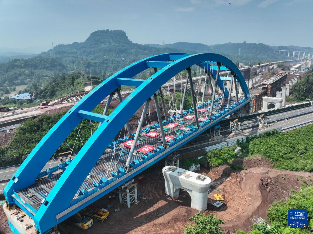 7月11日,由中铁四局承建的西渝高铁跨营达高速公路大桥主体平稳落在桥墩上,标志着全国首座高铁大跨度网状吊杆系杆拱桥顶推施工完成,为全线按期通车奠定了坚实基础。