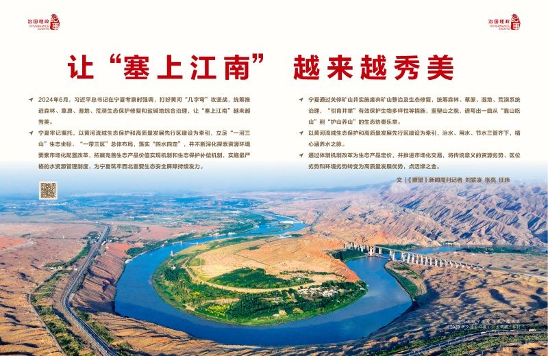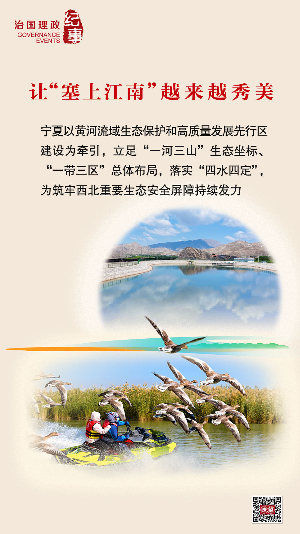 ◇宁夏牢记嘱托,以黄河流域生态保护和高质量发展先行区建设为牵引,立足“一河三山”生态坐标、“一带三区”总体布局,落实“四水四定”,并不断深化探索资源环境要素市场化配置改革,拓展完善生态产品价值实现机制和生态保护补偿机制,实施最严格的水资源管理制度,为宁夏筑牢西北重要生态安全屏障持续发力。
