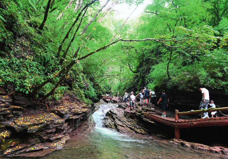 游客在位于宁夏固原市的六盘山国家森林公园游览(2024年8月4日摄)毛竹摄/《瞭望》新闻周刊