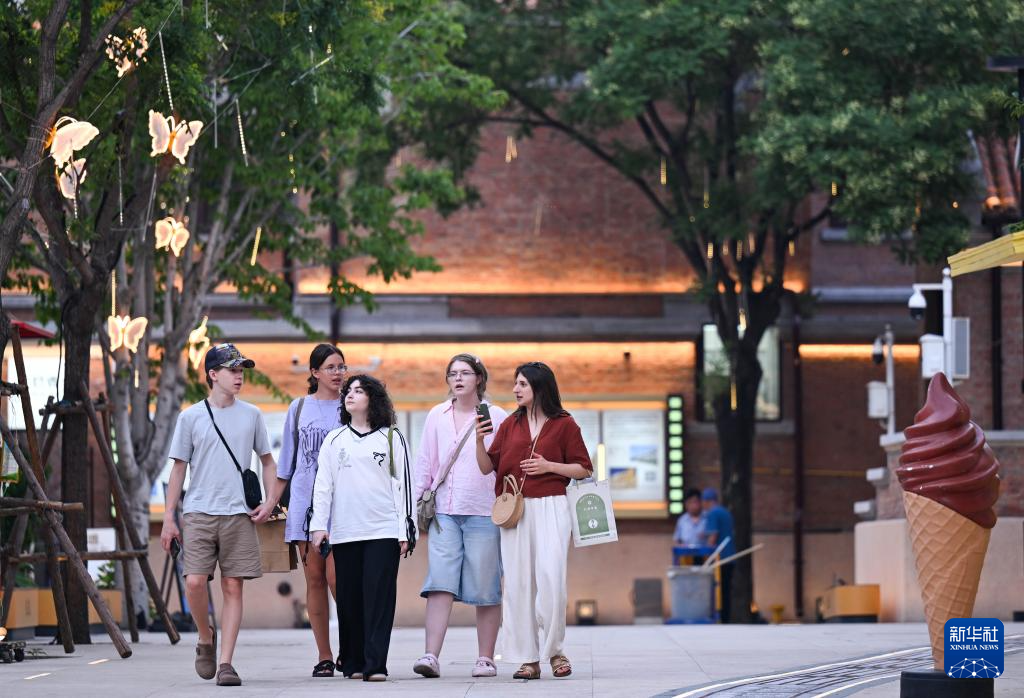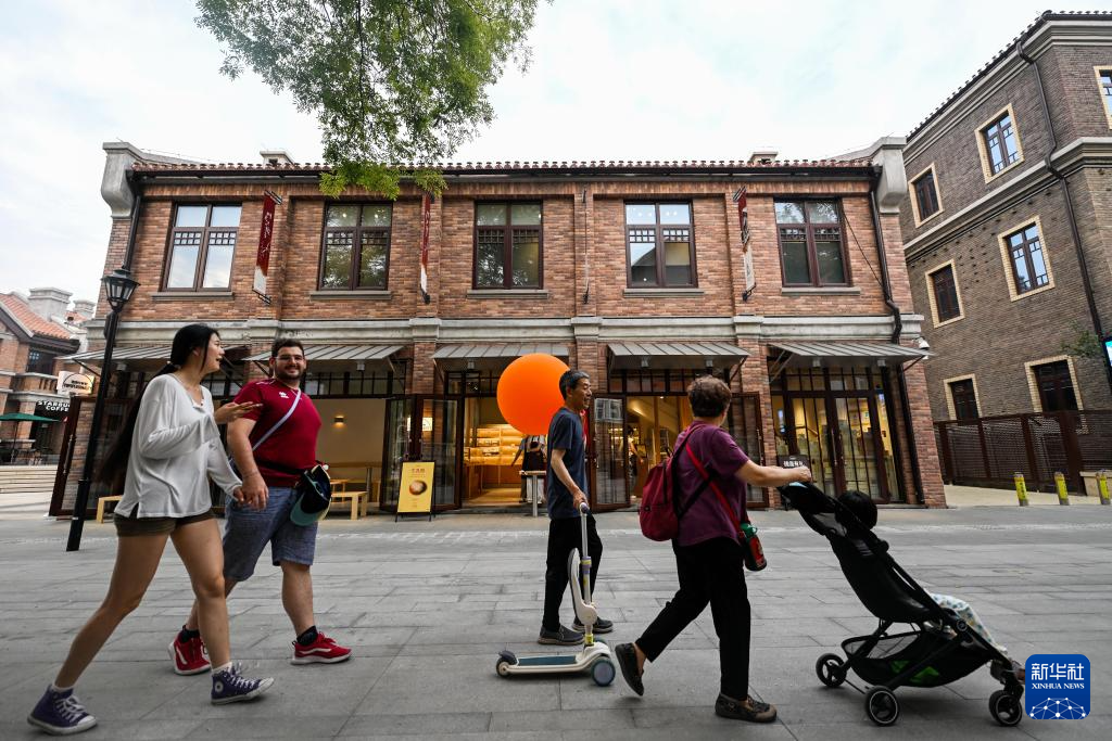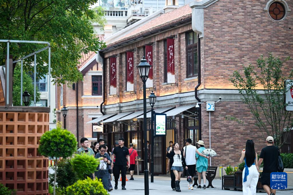 游客在天津五大道步行街散步休闲(7月9日摄)。新华社记者 赵子硕 摄