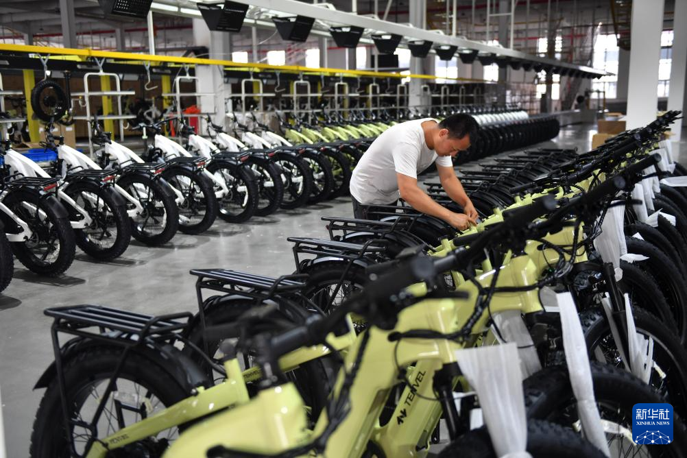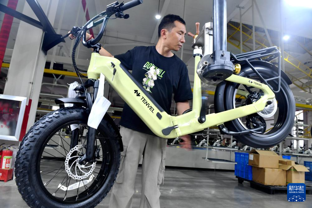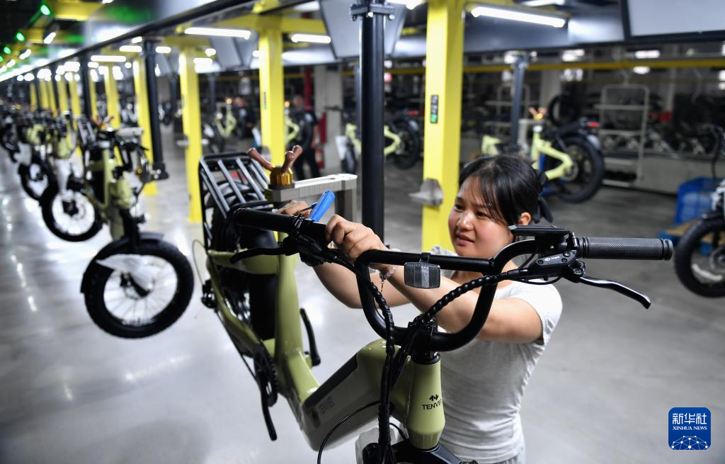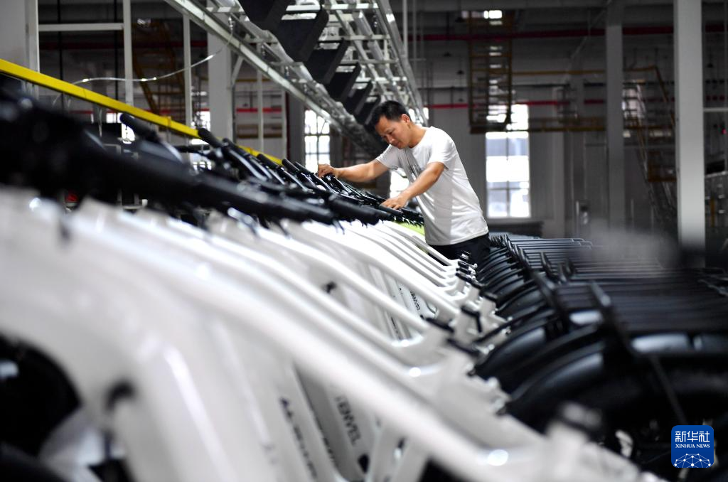 7月11日,邢台市经开区一家自行车生产企业的工人在生产线上工作。新华社记者 王晓 摄