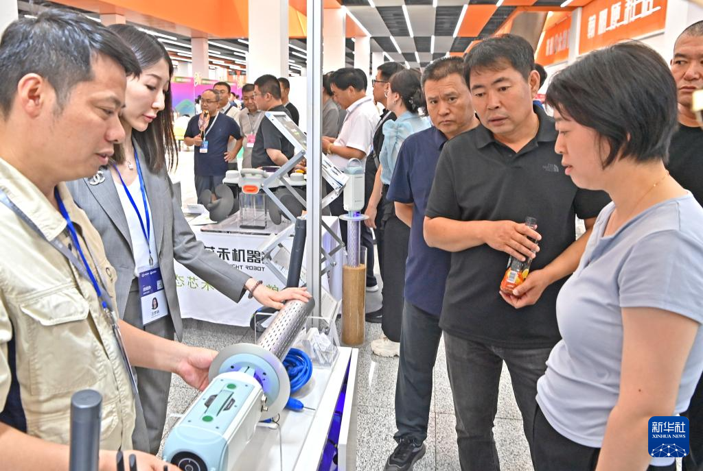 7月12日,观众在沈阳国际展览中心参观粮食监测器械。新华社记者 周华 摄