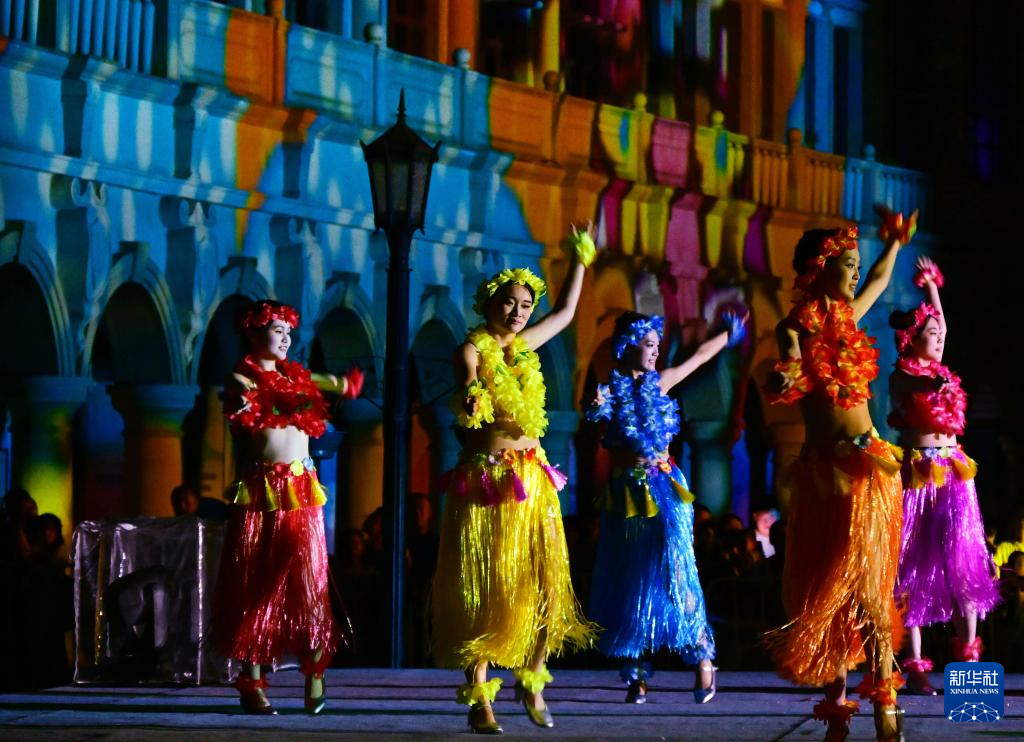 7月12日,演员在海洋光影狂欢节启动仪式上表演。新华社记者 李紫恒 摄
