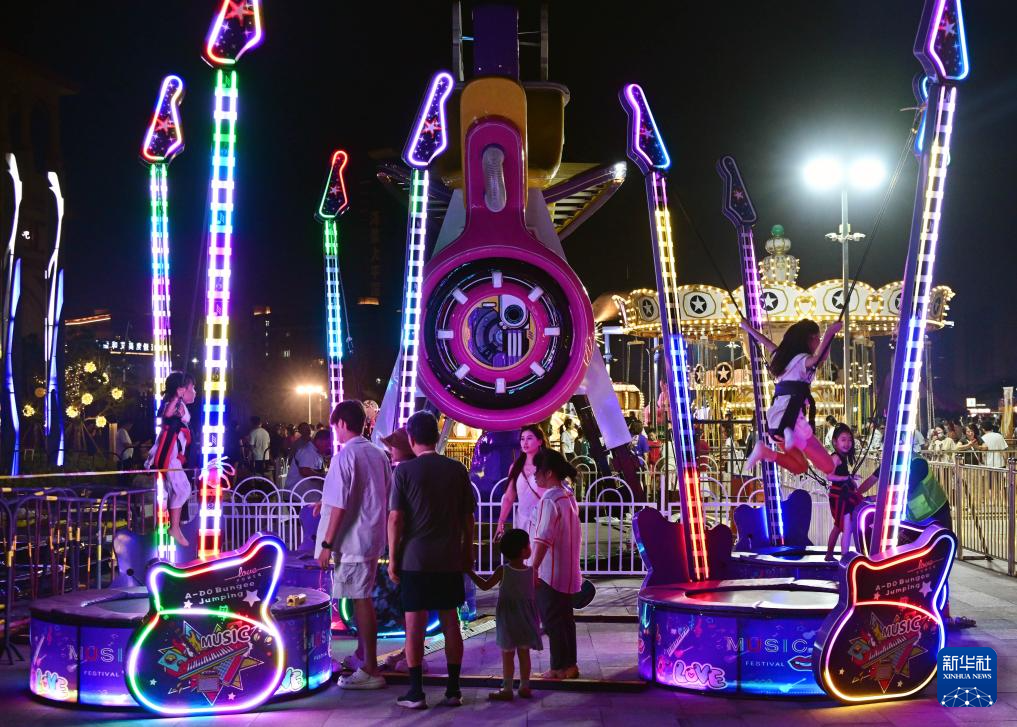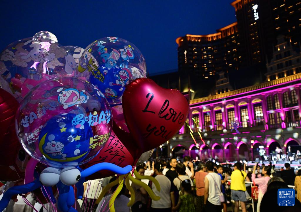 7月12日晚,山东省青岛市西海岸新区第七届海洋光影狂欢节在青岛红树林度假世界开幕。狂欢节以“光影”为核心,贯穿灯光秀、音乐表演、星光集市、儿童乐园等,在丰富市民游客文化活动的同时,激发消费活力,助力夜经济发展。