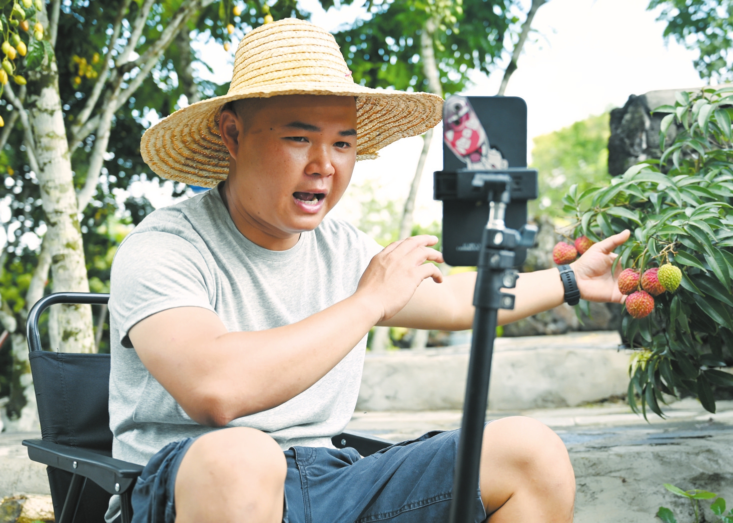 “看到有博主用英文介绍当地特产,觉得很有趣,就想通过自己拥有的英语特长和自媒体传播经验试一下。”7月12日,吴宇燕告诉记者,今年采摘季她通过短视频带动自家果园销售荔枝超4000斤,还在园内开设直播课堂,手把手教村民用直播软件拓宽销路,帮助家乡荔枝走向更广阔市场。