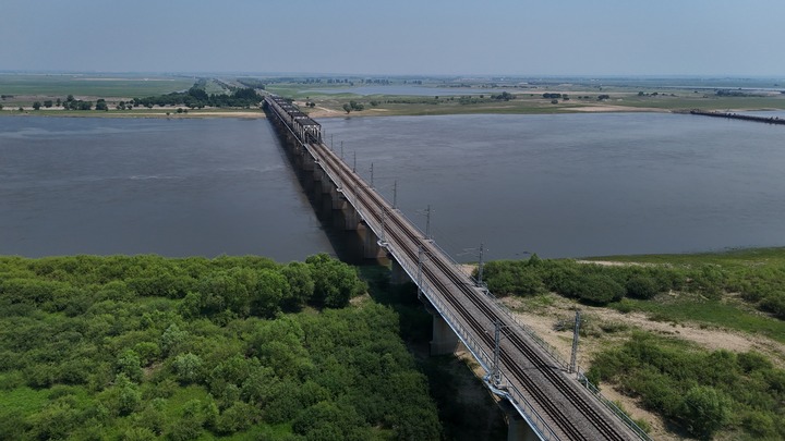 这是6月25日拍摄的泰来县境内横跨嫩江的平齐铁路嫩江桥。新华社记者 张启明 摄