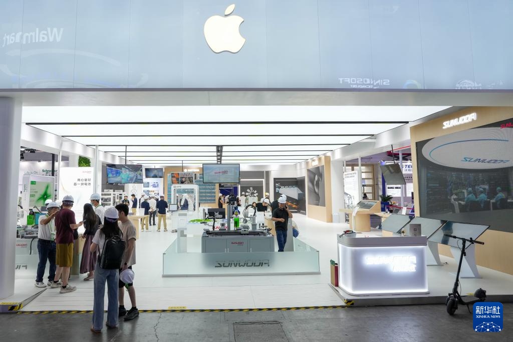 7月14日在第三届中国国际供应链促进博览会数字科技链展区拍摄的苹果供应链展位。新华社记者 鞠焕宗 摄