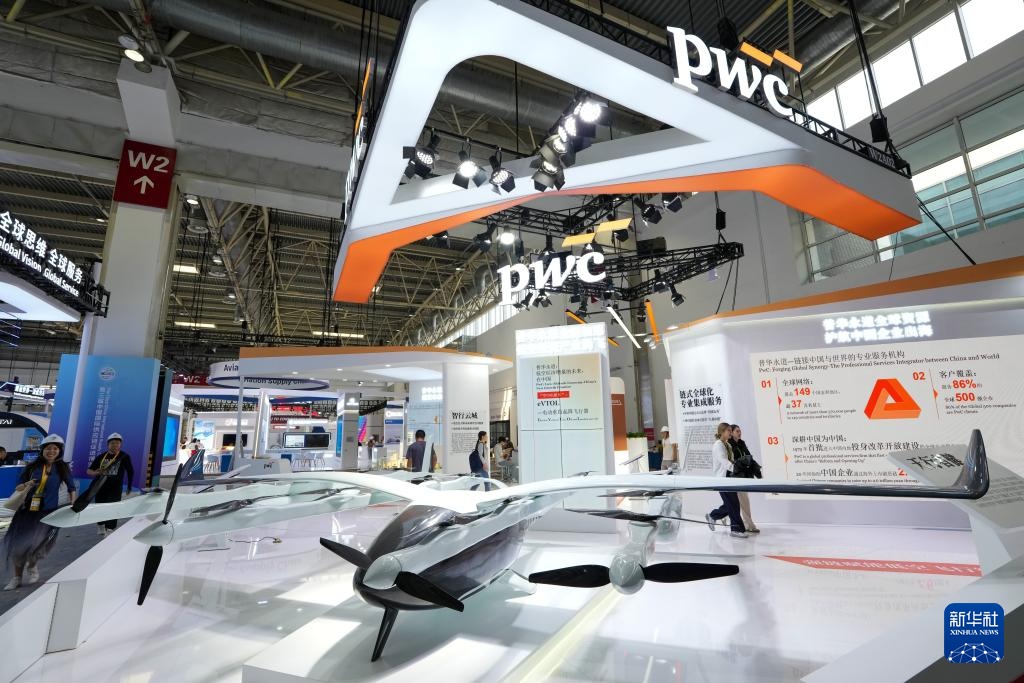 7月14日在第三届中国国际供应链促进博览会先进制造链展区拍摄的普华永道展位。新华社记者 鞠焕宗 摄