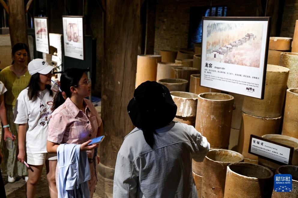 7月13日,游客在江西省景德镇市陶阳里历史文化街区观摩现场创作。新华社记者 刘金海 摄