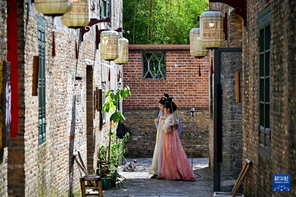 7月13日,游客在江西省景德镇市陶阳里历史文化街区游览。新华社记者 刘金海 摄
