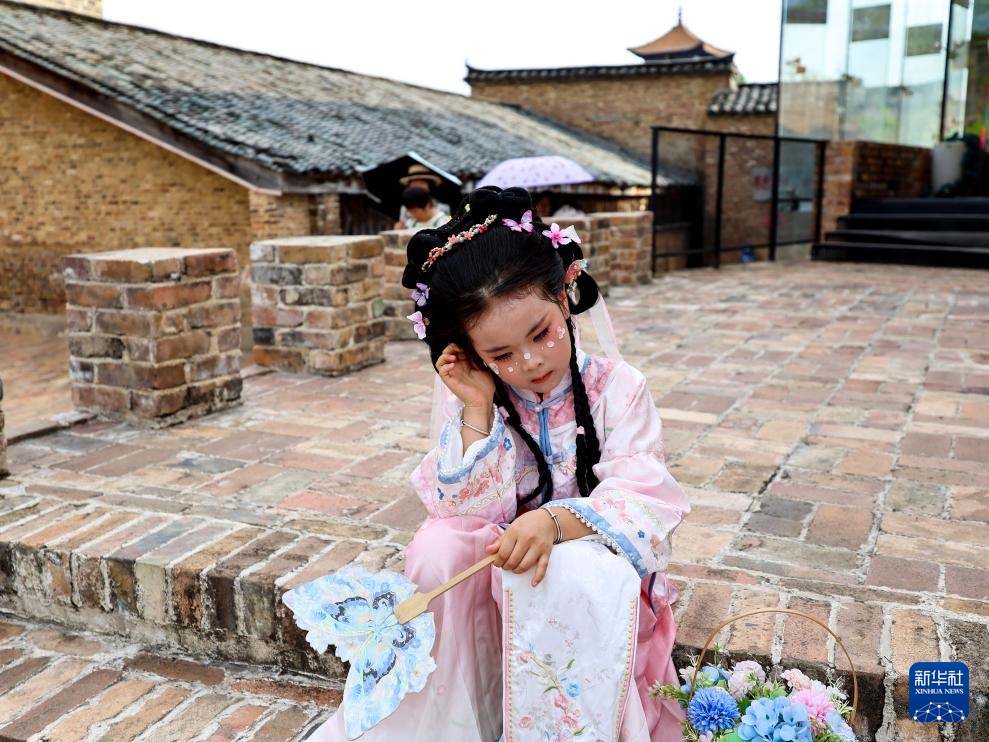 7月13日,一名小游客在江西省景德镇市陶阳里历史文化街区休憩。新华社记者 刘金海 摄