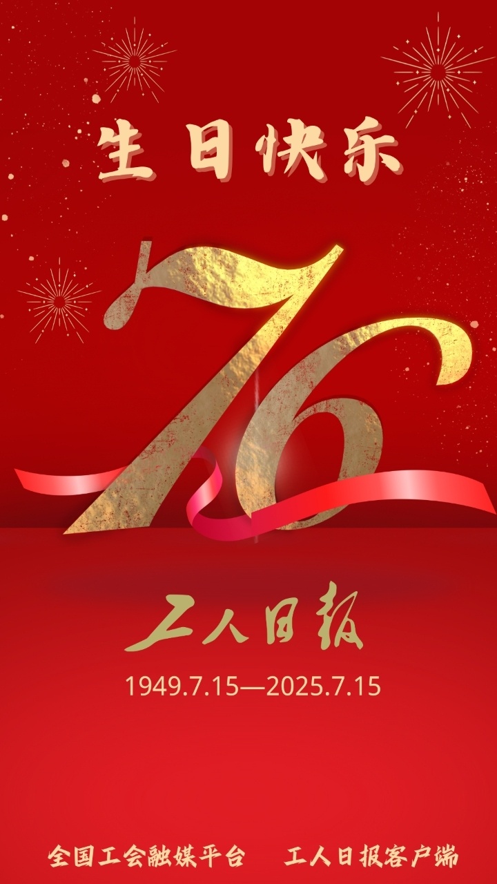 今天是2025年7月15日,《工人日报》创刊76周年。