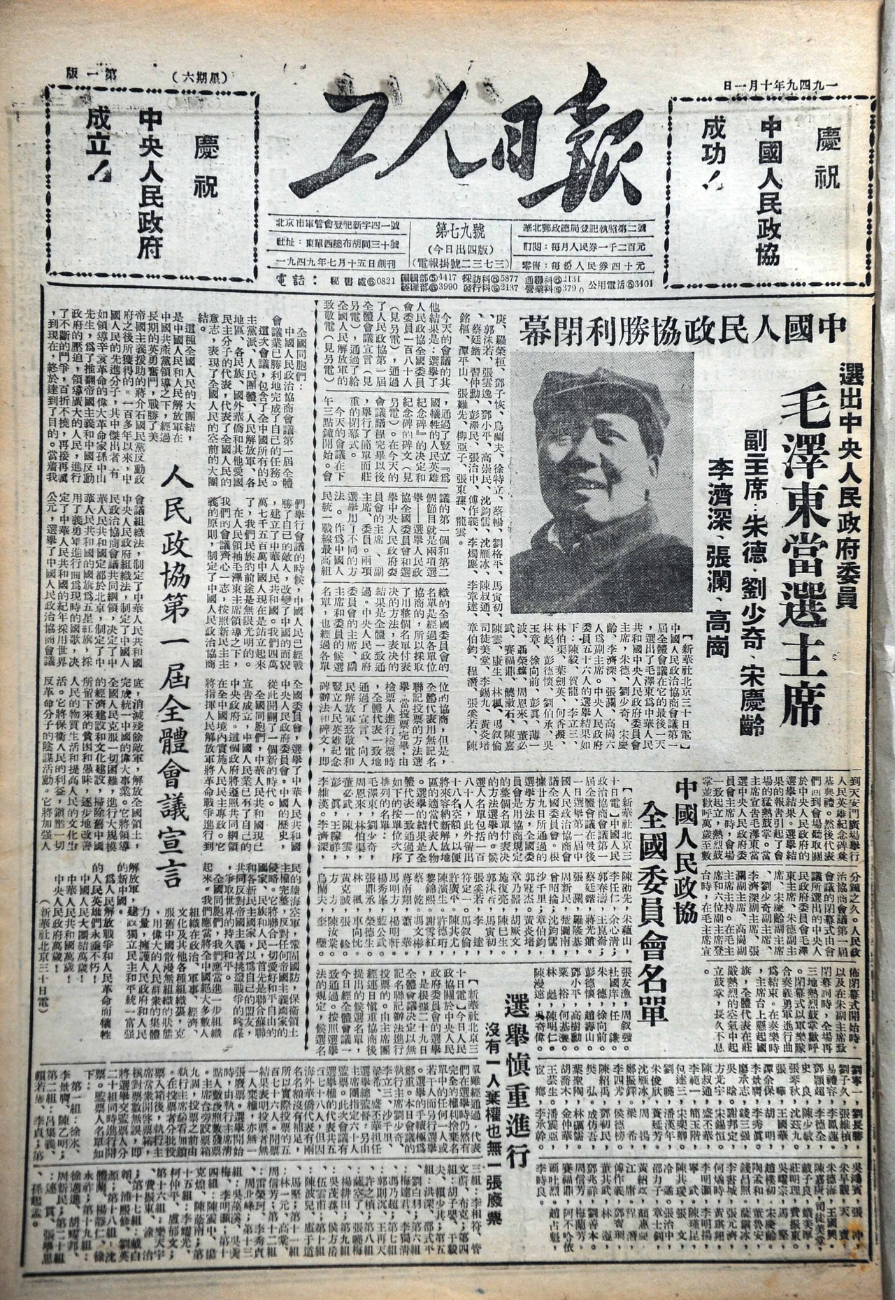 1949年6月,当时的北平有三份报纸——人民日报、北平解放报、大众日报。